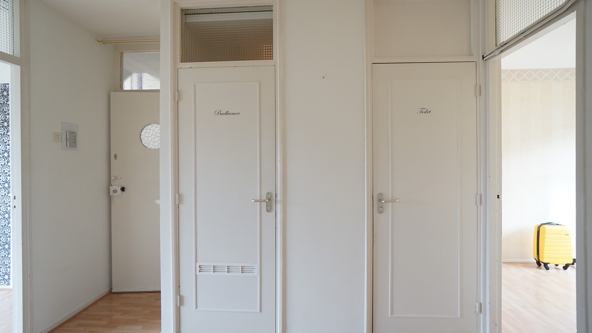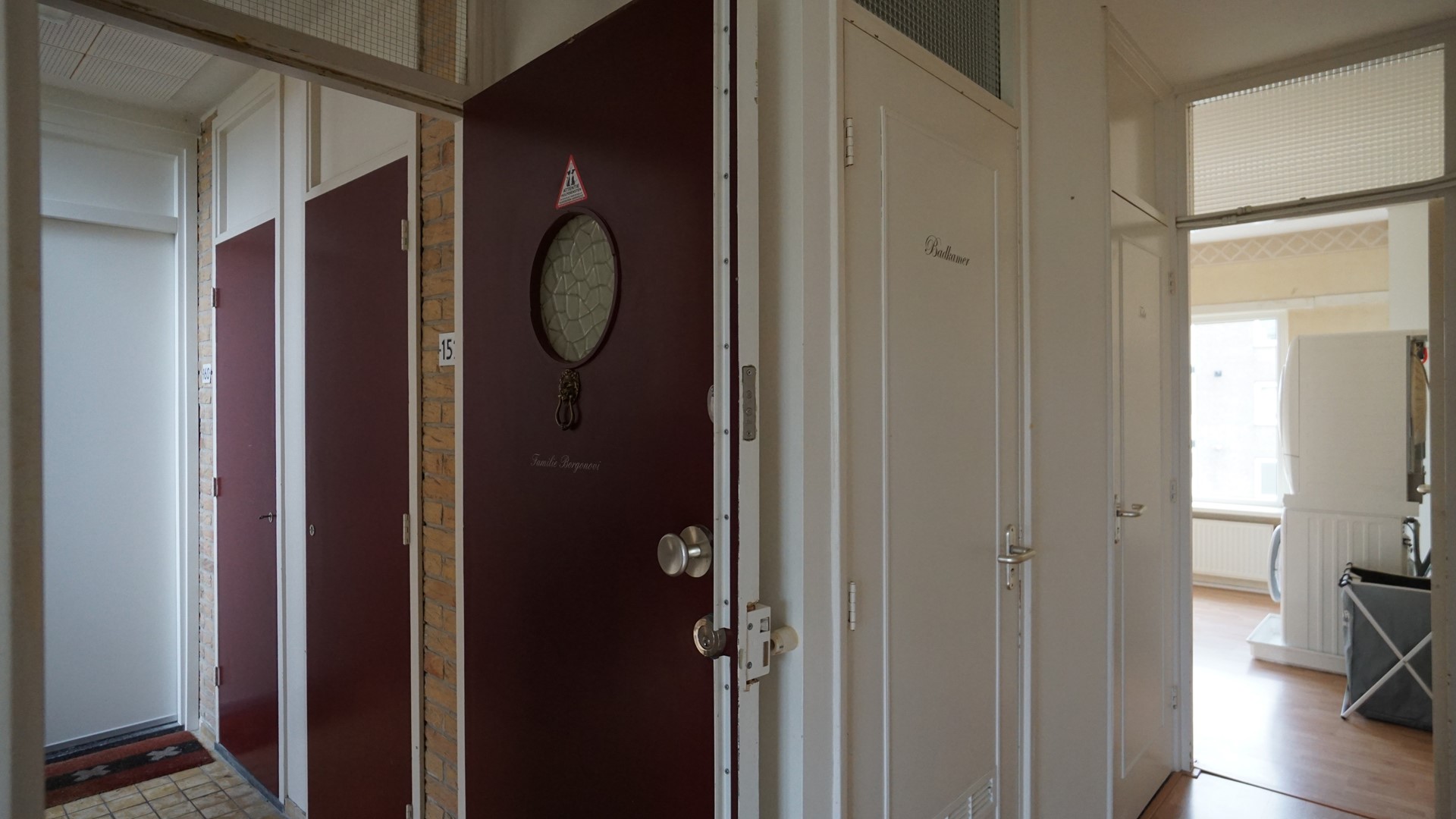 Entree met brievenbussen, trapopgang en binnendoor met toegang tot de berging.